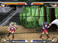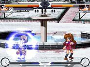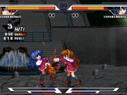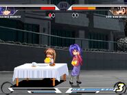 Gameplay is based on several other fighting games such as Street Fighter, The King of Fighters or Guilty Gear, and uses four buttons: Three buttons for normal attacks (Weak, Medium and Strong), and a fourth button whose function varies for each character. The game is notorious for its huge amount of in-jokes and references to the original visual novels, as well as other fighting games, as the characters take some of their move, or even their whole fighting styles, from those games. The game has a large cast, but, aside of the final boss Kanna from AIR, the characters are all well balanced, as tier lists don't really make much of an impact as with other games.
