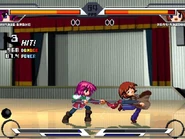 Makoto is a very fast character who uses her multiple gadgets to fight. Her projectiles linger on screen for long after being fired, making Makoto an ideal character for a defensive style of play.